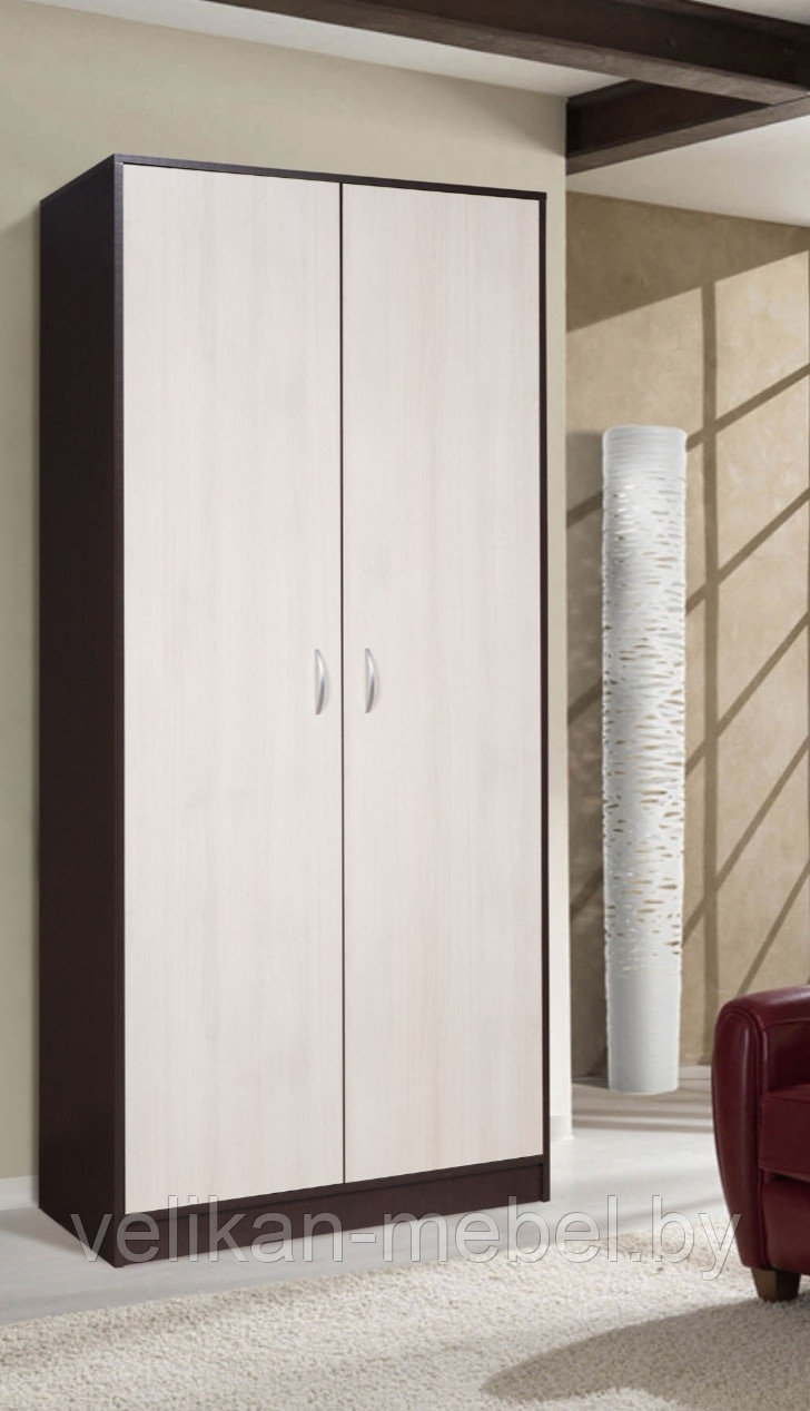 Классический компактный распашной шкаф с 2-мя отделениями :штангой для плечиков и отделением с полками для вещей,вариант изготовления :